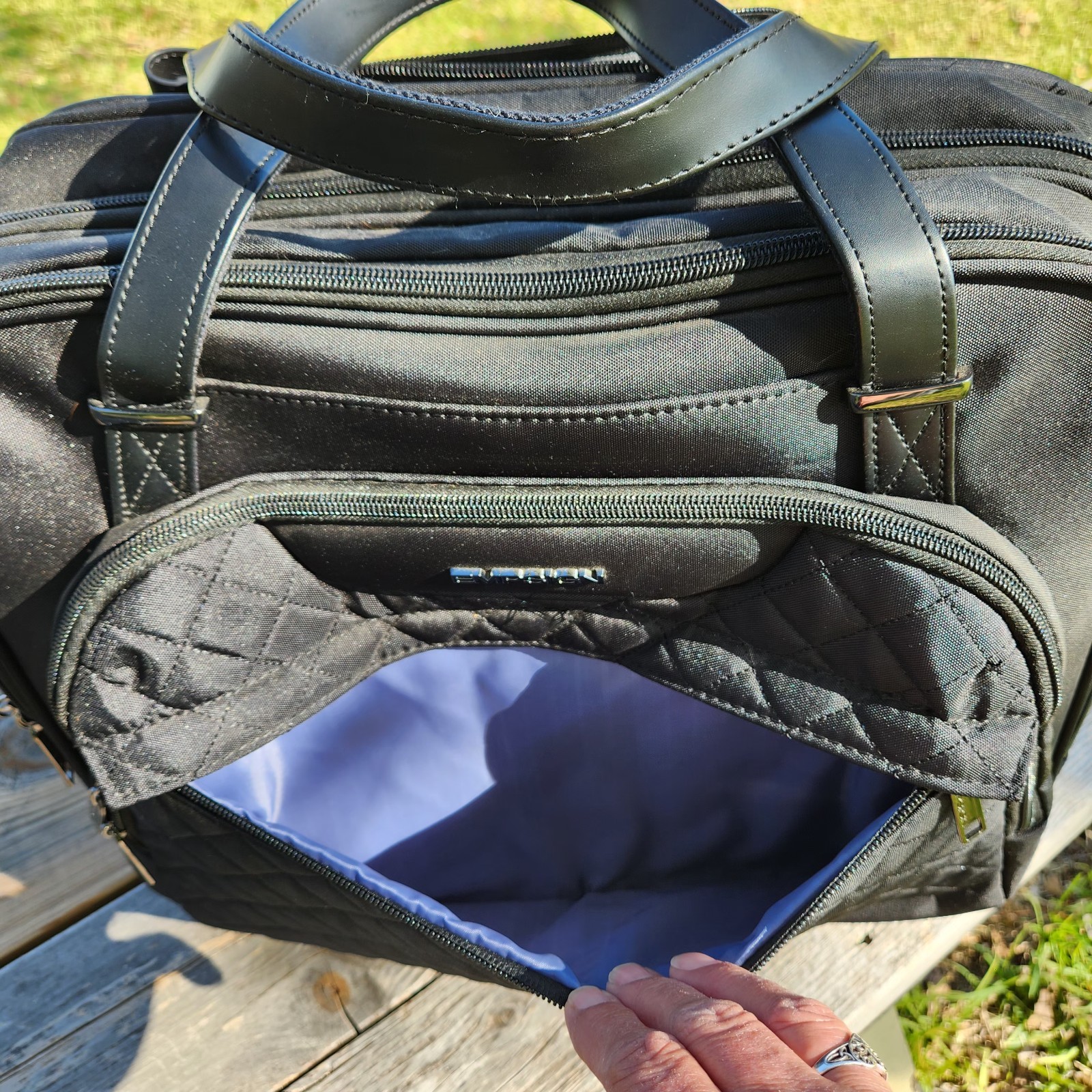 The EMPSIGN 17" Rolling Computer Briefcase is a versatile and durable laptop bag designed for travel and office use. Featuring a roller bag design with wheels, this black polyester briefcase offers easy transportation for laptops up to 17" in size. It includes a zipper closure, water-resistant material, RFID blocking feature, and padded interior for added protection. The telescoping handle and carry handle make it convenient for both men and women to use, making it a practical and reliable choice for carrying your laptop and other classroom or office supplies securely. Many pockets